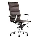 Sleek and simple, this hi-backed office chair from Zuo Modern adds style to just about any office setting while providing the user with a functional and comfortable seat. The retro-style Lider office chair features a washable leatherette seat with horizontally stitched ribbing. Chrome cast aluminum arms enhance the chair's comfort, while its chrome steel tube frame soundly supports the user's body. To accommodate taller users and individuals who prefer greater back support, the chair boasts a 25-inch high seat back. The chair also benefits an adjustable height locking tilt mechanism for a seat height range from 17 to 19 inches high and swivels for further convenience. For mobility, the chair's cast-aluminum base rests on five chrome-capped wheels. This hi-back office chair requires some assembly and comes in black, white, espresso, and terracotta hues. Additionally, armless, conference-style, and regular height models of this chair are also available. Covered by a limited one-year warranty, the hi-back office chair measures 20 inches wide by 25 inches deep with a height of 42 to 43-1/2 inches. This item weighs 42 pounds upon shipping.