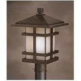 A handsome outdoor light from Kichler. Attractive post mount fixture comes in an aged bronze finish with textured linen seedy glass panels. U.L. listed for damp locations. Post not included. Uses one 150 watt bulb (not included). Measures 17" high, 11 1/2" wide.